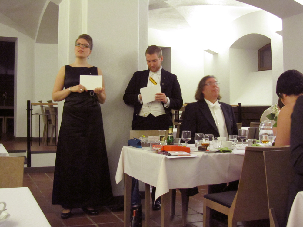 Och så blev det dags för hälsningar. ÅAS, NN, Fides Ostiensis Florakören och Brahe Djäknar fanns representerade bland borden och Tsf fick motta allt från en inbetalning till Rädda barnen, grönsaksfrön av alla sorter, en fotboll, cd-skivor och en vinflaska.IMG_2609-1 Huvudrätten, som var mycket delikat, bestod av skivad nötinnerfilé med rödvinssås, örtkryddad klyftpotatis och säsongens grönsaker och det vegetariska alternativet bestod av grönsaksfyllda portobellosvampar med färsk tomatsås och örkryddad klyftpotatis.IMG_2610-1Och efter att huvudrätten var uppäten var det dags för festtal av Mikael Lindfelt som pratade om all sorts pinsamheter som finns. Efteråt var det Sofia Eklunds tur att inta pianot och med sin vackra stämma fick vi lyssna på två sånger.IMG_2614-1Efterätten som bestod av sachertårta och kaffet kom in och så blev det dags för årets Ture Teolog-gala (som i sin helhet finns i föregående inlägg). Mycket fina nomineringar och fina priser för vinnarna.